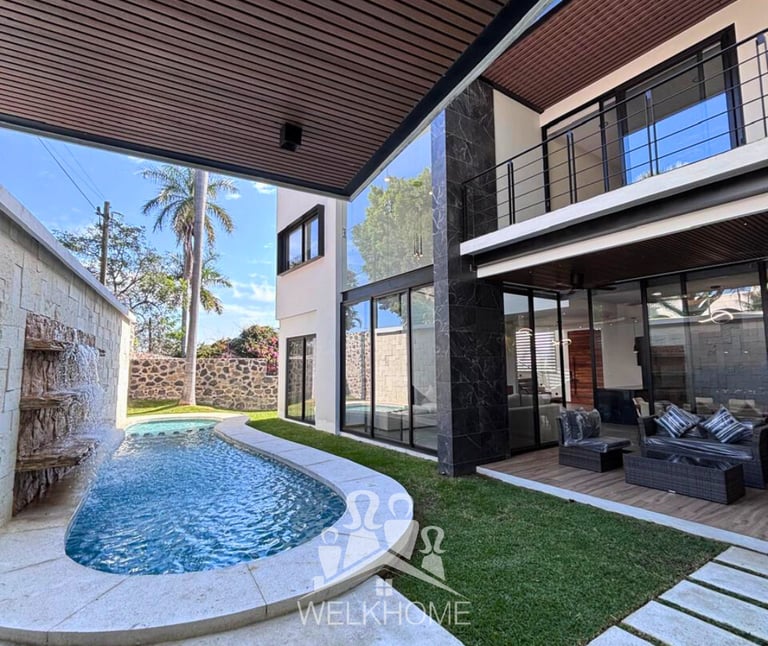 Hermosa residencia con toques coloniales que hacen de la casa un lugar único, acompañada de un jardín amplio y una alberca de ensueño.
