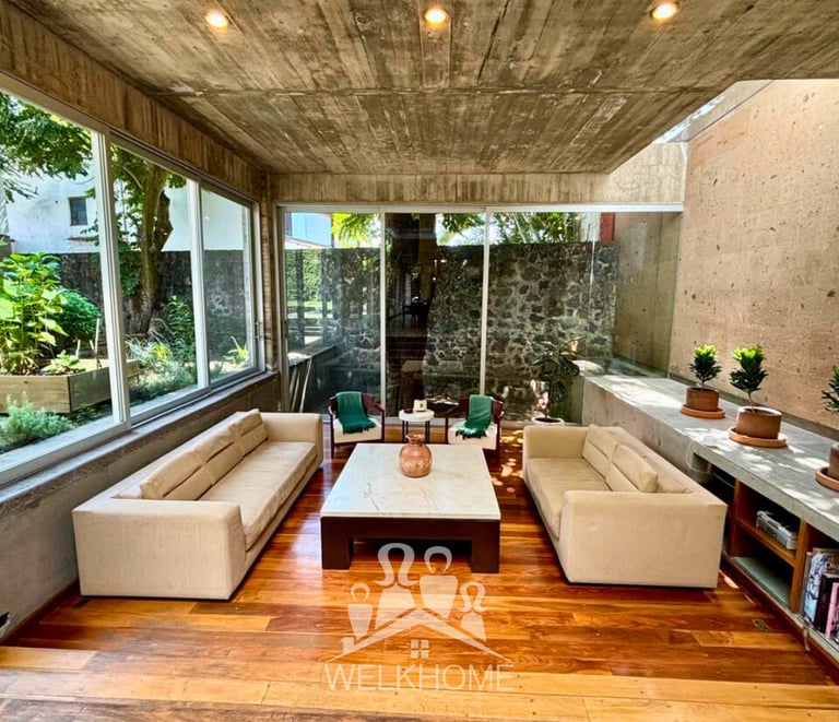 Majestuosa casa estilo colonial, ubicada al norte de Cuernavaca, rodeada de naturaleza y tranquilidad. Su diseño en tres niveles ofrece amplios espacios y una atmósfera acogedora con detalles artesanales en piedra y talavera.